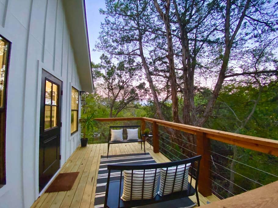 Unwind at this charming hill country guest house. The house was sustainably built with concrete, high ceilings, and ample access to the outdoors for a rustic yet charming feel. Enjoy the forest views from the private balcony. The house is located on tree-laden land, close to Alligator creek, with hillside views and natural charm. Although Texas' oldest dance hall is only a five-minute drive and one right turn away, the area feels peaceful and secluded. Reach out if you want info on some of the best places to eat and visit around town!